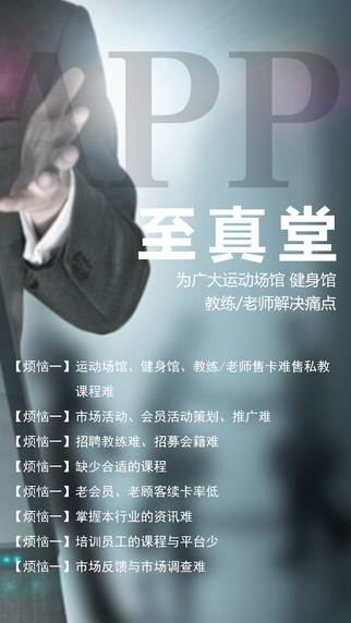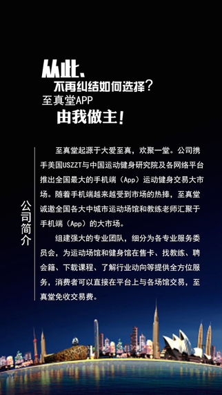 至真堂是中国最大的一款同城运动社交软件,这款软件拥有全自动精确定位系统、独具特色的同城社交圈子、更全面的场馆选择、更专业的教练、更有趣的活动、更齐全的招聘、更丰富的投资项目等功能服务,让用户享受最好的运动社交服务。