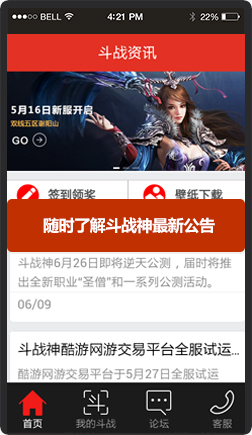 斗战资讯是腾讯游戏助手为网游斗战神制作的一款手机资讯获取工具,绑定游戏帐号后即可在手机上管理你的角色,查看消息,充值都非常方便,还有礼包领取,每日签到等特色服务。