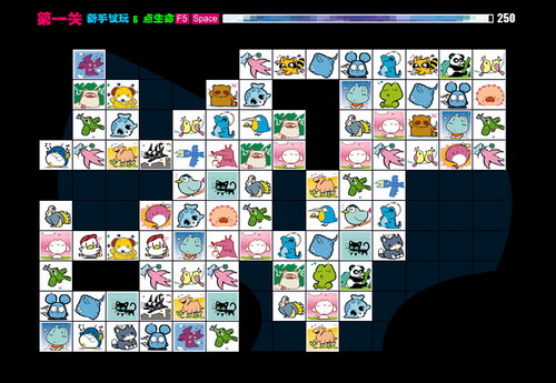 如何开始:游戏加载完毕点击[开始游戏]即可进入游戏。操作方法:鼠标左键点击两个相同的图案,如果图案之间的连线转折不超过2次且不经过其他图案,即可消除。
