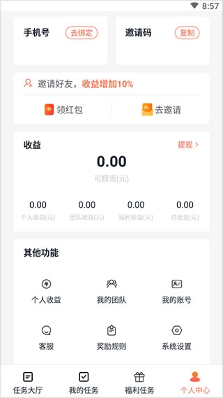 4、于个人中心,能够查看自身余额,还能了解拉人赚钱的方式等相关信息。