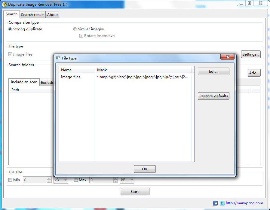 有了它,你也可以搜索一个给定的文件掩码重复的图像。