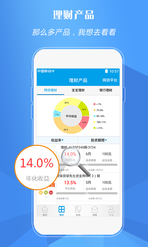 金融资讯:即时行情分析,数据统计,热点实时金融新闻发布,投资者可以在这里精准的、深入的、快速的获得真实的网络投资、基金理财、银行理财、趣玩众筹的金融资讯理财产品:活期、定存、宝宝、银行、众筹网络理财多品种纵横比较,个性化智能优选推荐安全、收益高、灵活的热销互联网理财产品,多维度图文分析详解,让您秒懂任一理财产品的门门道道,更有专业的大牛专家评论供您参考