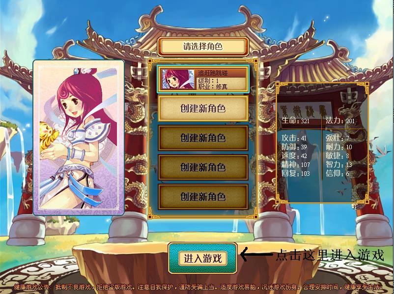 1、创建自己喜欢的角色,进入游戏