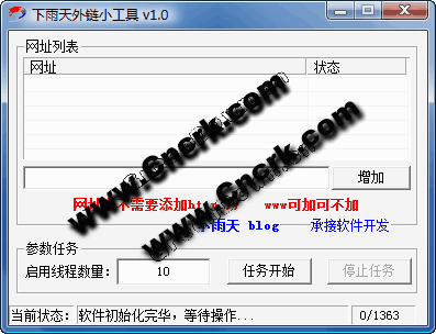 支持多地址,修改了多线程方式,解决了老出错的问题! 原理很简单,就是批量查询,很多网站查询都有最新查询几率的,一直挂着,对外链有一定的效果