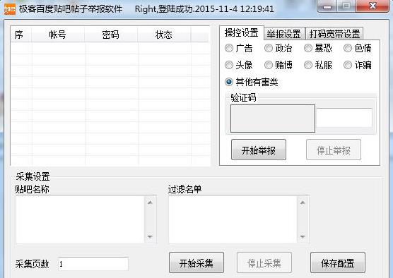 极客百度贴吧帖子举报软件是一款自动举报贴吧帖子的软件,这款软件界面简洁,操作简单便利,用户只要设置要投诉的贴吧名、吧主名、选择投诉类型和理由,软件就可以快速完成举报,免除手动烦恼。