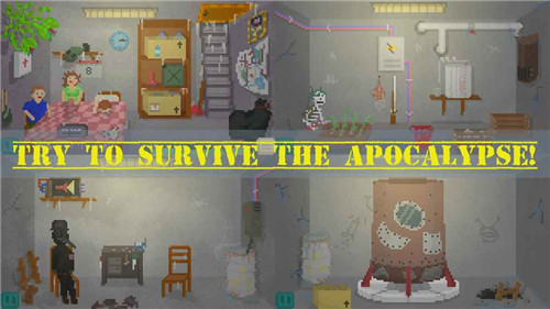 《Alive In Shelter生存庇护所》是一款策略游戏。相信大家在看到游戏图片的时候都感觉非常的熟悉,没错,这可以说是《60秒避难所》的像素手机版本,继续延续生存模拟求生模式。