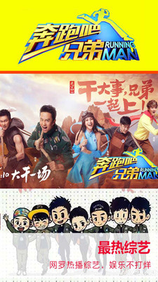 娱乐综艺:笑傲江湖、原来是你、奔跑吧兄弟、隐藏的歌手、星星的密室、偶像来了、爸爸去哪儿、快乐大本营、中国好声音、金星秀、极限挑战、康熙来了、非诚勿扰