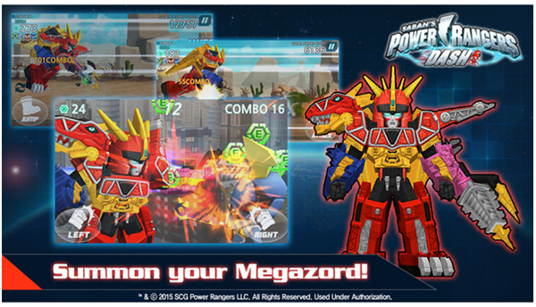 《超级战队 Power Rangers Dash》是一款包含了机器人主题元素的横版跑酷类游戏。操作起来非常简单,左下角设置了跳跃键,连点两次就可以连跳,右下角是攻击键。每次游戏都以3人小分队进行,玩家通过切换键可以换人,前排队员如果碰到敌人或者障碍物就会消失。游戏收录了原作中近60名队员,通过随机抽取可以获得队员,玩家可以通过强化提升他们的战斗力。每个队员的攻击方式也不同,有擅长近战也有擅长远程攻击的,收集队员也是游戏的乐趣所在。喜欢机器人的不要错过哦~