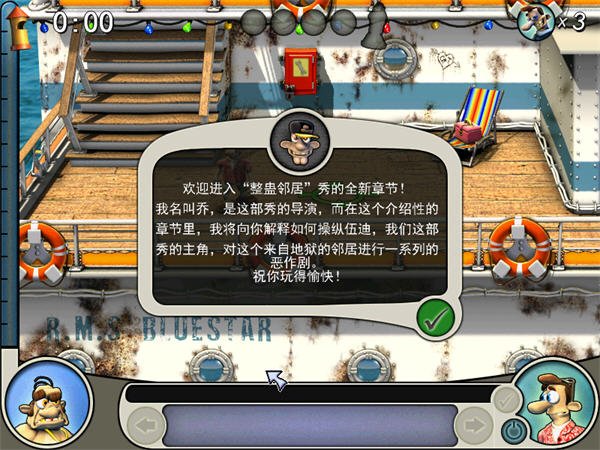 《整蛊邻居2:恐怖假期》是欧洲著名的游戏公司JoWood开发的趣味性游戏。有别于一般游戏的角色扮演,玩家将以伍迪的身分,报名参加电视节目的现场直播,而镜头则对准伍迪邻居这位反复无常、老穿着粉红色可爱拖鞋的魁梧怪老头!在之前两部作品中,玩家已经在邻居家中把这位怪老头捉弄得半死。这次,电视镜头跟随怪老头的旅程来到中国、印度和墨西哥等6个国家地区,游戏中会出现5个新的角色(怪老头的夫人和儿子),数种可供玩家捉弄对手使用的动物和14个故事情节。