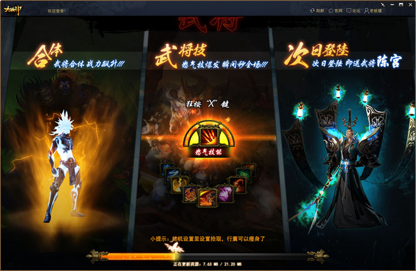 在大战神游戏中,玩家们可以义结英豪,横扫乱世!
