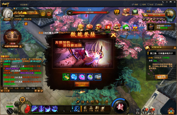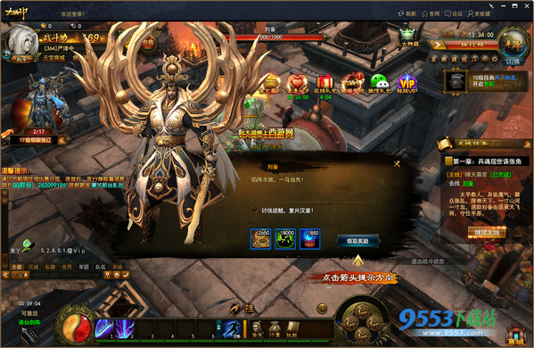 选择好职业进入主界面,首先进入的是新手指导。从使用技能、更换装备到获得第一个武将、如何使用武将合体技能及坐骑等。