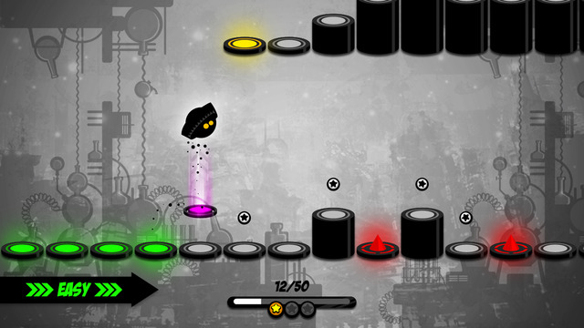 小墨点又回来啦!继续帮助你的小伙伴,随着音乐的节奏点击,让它跃过尖刺,永不言弃!《永不言弃》系列的游戏的音乐很吸引人,由于这是一个节奏游戏,你必须很好的配合节奏来玩,节拍时机就是一切。游戏的操控很简单,主角会在你点击屏幕的时候开始在支点上随着节奏跳跃,但是你会遇到红点、钉柱等降落到上面就会死的东西,更高的支柱则需要你跳上去才行,红色的点需要你提前点击绿色的着陆目标才能翻越过它。想跳上高的支柱你可以点击屏幕上的任何地方,但如果是多个支柱在一起时你必须快速反应。
