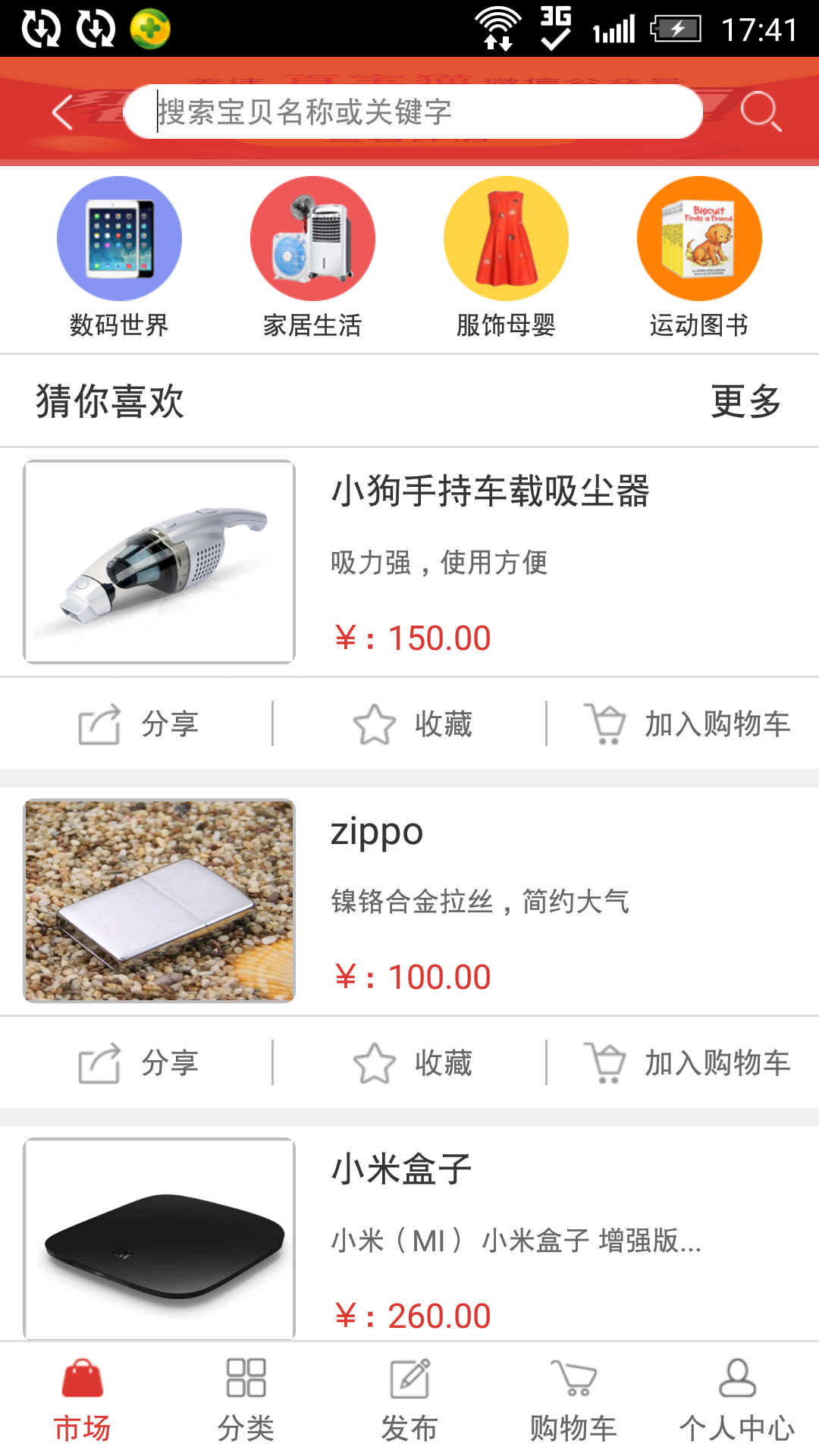 3.购物市场:可以在市场内购买或者发布自身的物品,方便用户处理自己的闲散物品