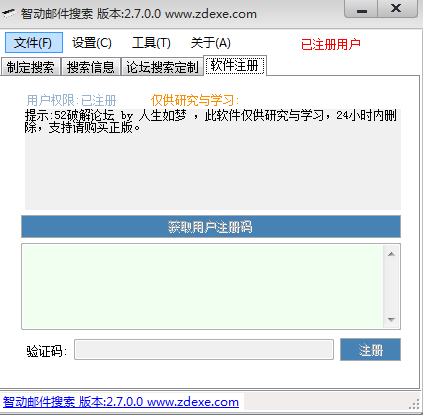 智能邮件搜索软件是一款网络邮箱搜索采集工具,用于搜索Internet上的Email地址,用户可以进行定制搜索,搜索指定网站或者论坛。邮件搜索软件已经被大神破解,所有的功能都可以免费无限制使用。