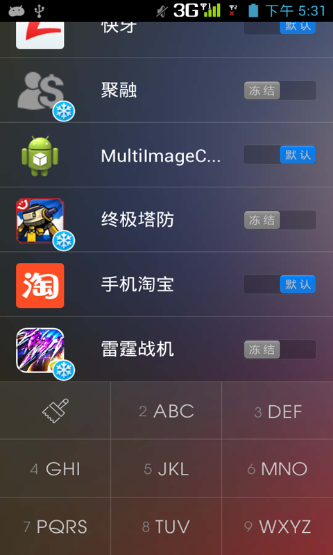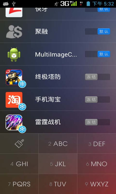 1:T9快速启动应用;2:冰冻应用程序;(需要有ROOT权限)