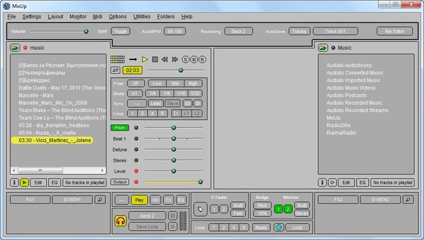 MixUpDJ是一款非常专业的混音器,这款软件由Spacehead Systems制作出品,能够帮助用户简单的进行声音结合,加强歌曲的律动感和节奏感,将家庭音乐改造达到歌舞厅那种效果,带用户体验全新的音乐律动。