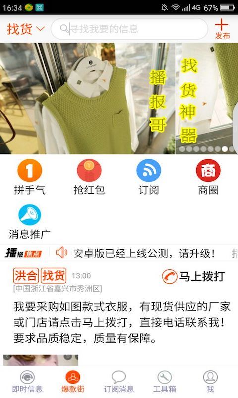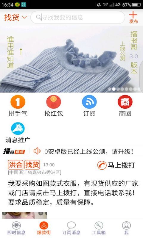 毛衫、服装及相关产业链上下游从业人员及周边服务配套从业人员地域分布广,产业圈需求信息与紧俏供应信息不畅,常导致采购商在找货过程中费时又费力、雇主招工人、招加工过程中“一将难求”,供应商无法及时找到有效客户等问题。传统的“商圈”在“检索”有效信息时往往显得无能为力,挨家挨户打听不仅麻烦、即时性差,容易让人反感,并且不能实时形成真实的产业链数据。因此本系统的目的就是要为毛衫、服装及相关产业链上下游从业人员及周边服务配套从业人员解决信息不畅、沟通不及时的问题。【更新日志】