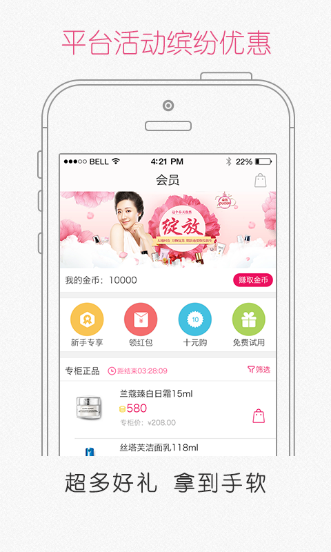 获得40多家着名护肤、化妆品牌正式授权,真正实现专柜正品线上销售,为用户精打细算花好每一分钱,全面打造专属的丽人购物体验。