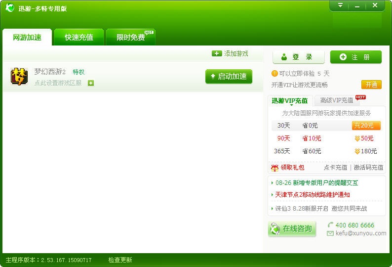 飞游网游加速器v2.0.0 更新内容: