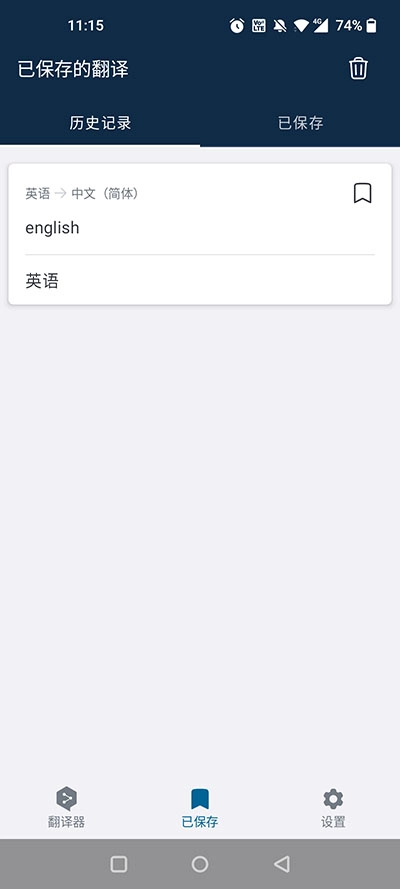 3、你能够在“已保存”页面里查看此前翻译的内容。