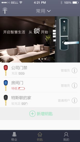 1、给生活+一点速度,时间是金钱,开门无需等待,验证短信秒传至手机;2、给生活+一点体贴,每种钥匙逗配有钥匙图标,区分类别,一目了然,公租房也有单独的管理员啦;