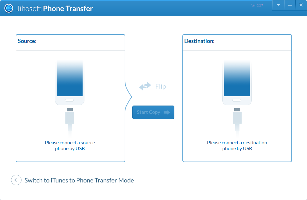 Jihosoft电话传输提供了一键式解决方案,从手机传送数据至手机。包括Android到Android,iPhone到Android。