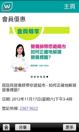 4.健康团队话你知︰提供屈臣氏药剂师及营养师为大家讲解的保健及健康咨询短片,并每月更新屈臣氏健康护航健康评估时间表。