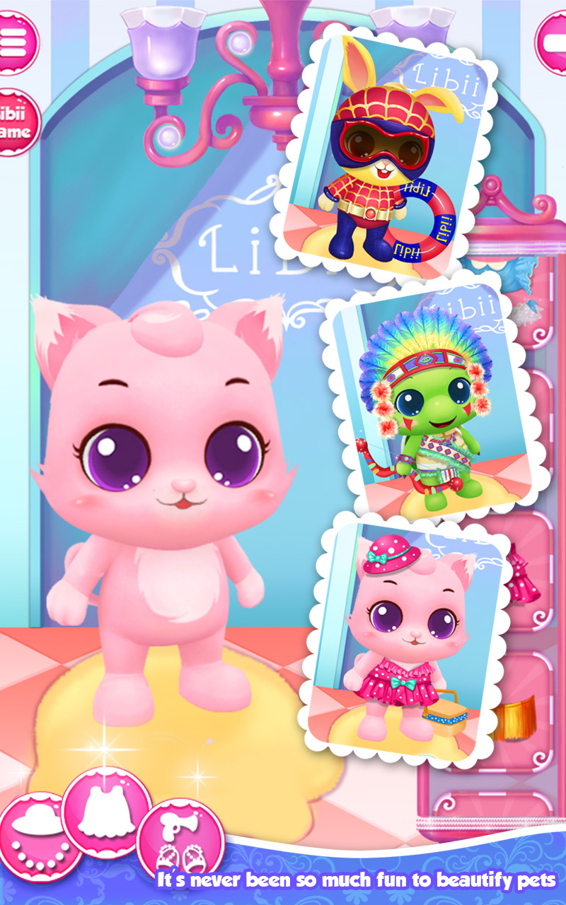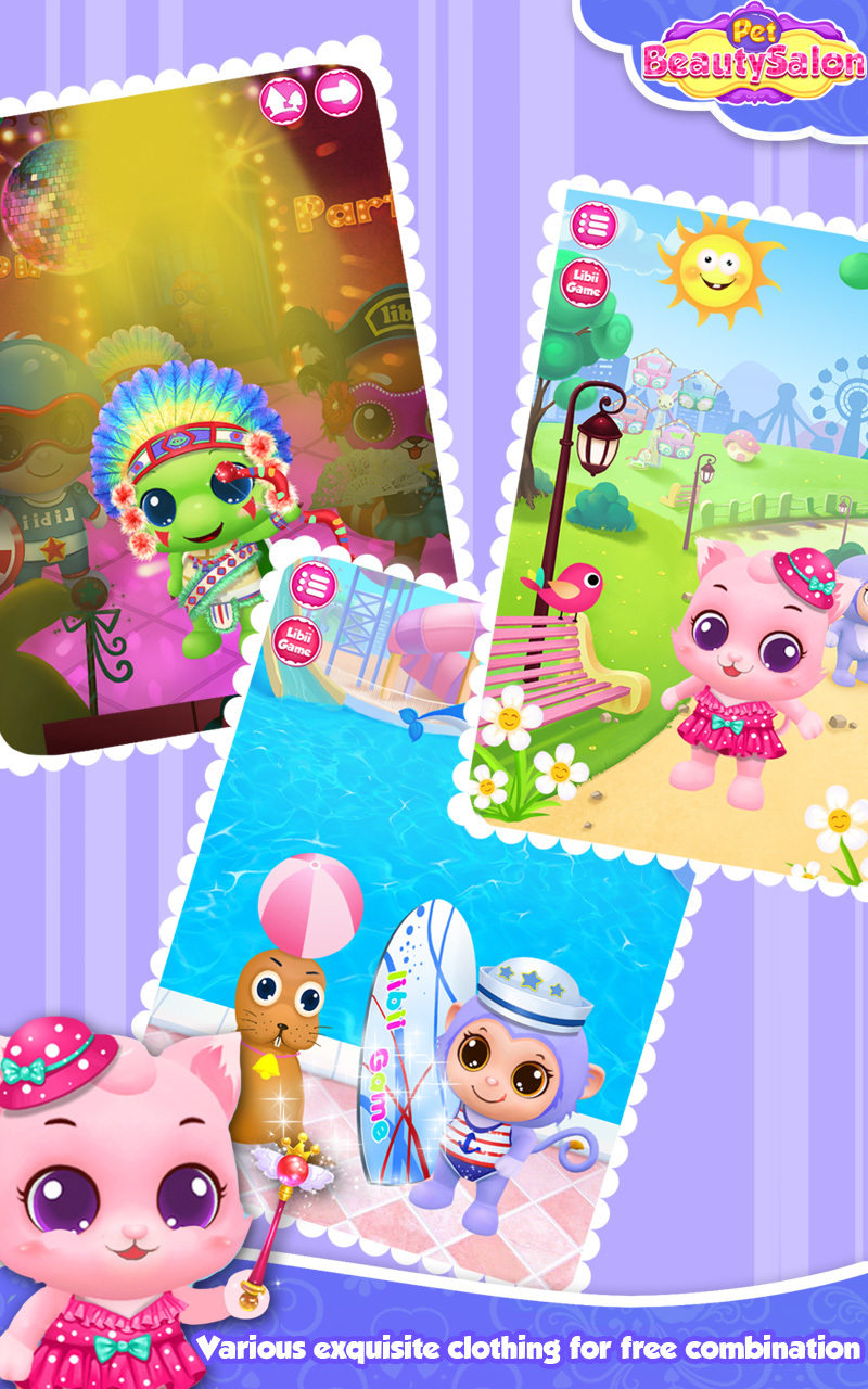 打开游戏,选择一只宠物开始给它清理。首先,带它去洗个澡吧。不过,你要想让宠物变得干干净净的,得完成我们的小游戏才行。比如,你要将小虫子从耳蜗迷宫中夹出来或者加入除菌大战,努力帮助守护战士战胜细菌魔王!嗨看见了吗,给宠物洗澡时还会飘起好多泡泡呢,更奇妙的是,这些泡泡还能发出悦耳的音乐,快来戳戳看!好了,玩够了我们也给宠物清洗完了,点击箭头进入美容界面吧,SPA可是一定要做的,快来亲手为宠物制作面膜。对了,这里还有许多精美的宠物服装噢,为你的小伙伴换上一身漂亮的衣服吧!费了这么大劲儿,终于给它收拾好了,快挑选一个我们精心准备的活动,带上你的小可爱出去嗨翻天!你们一定会玩的很开心~小宠物们今天去了美容院,感觉自己萌萌哒。你还在犹豫什么呢,赶紧带上你的小宠物也来试试吧!【游戏特色】