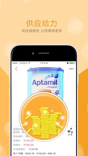 海豚供应链是有棵树集团公司开发,公司主营海淘类产品,公司的经营理念是:“致力于为中小海淘企业提供正品海淘货源。”海豚供应链先在全球对知名的海淘类产品进行采购,然后组织跨境物流,并通过海豚分销平台对接中小海淘企业,然后帮助中小海淘企业代发货给终端消费者。海豚供应链APP是帮助分销商进行采购、微仓管理、订单管理等的工具。