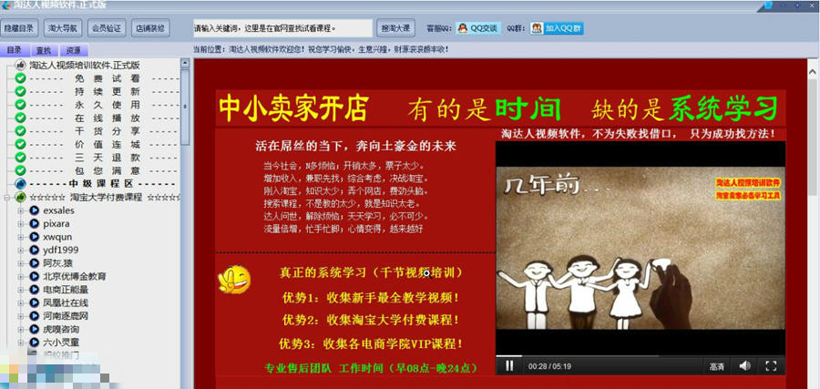 免费版不需要注册,直接打开就能播放,仅可观看淘宝大学部分课程,且无更新!正式版需要注册才能使用,除淘宝大学以外,还能观看其它电商VIP课程,如慕斯城、诺思星、狐妖等!课程实时更新!