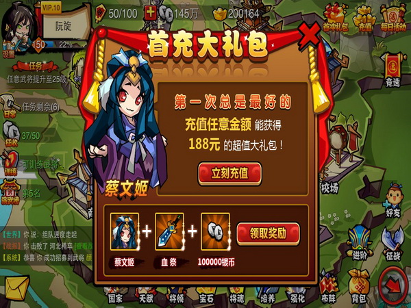 丰富的团队副本,强大的好友互助、切磋、海运等功能,让您交到真正的铁血战友,从此征战沙场不再孤单
