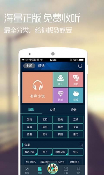 1、有声小说:恐怖悬疑、青春校园、古风宫斗、玄幻奇幻、名家名著、麦家、唐家三少、天蚕土豆。
