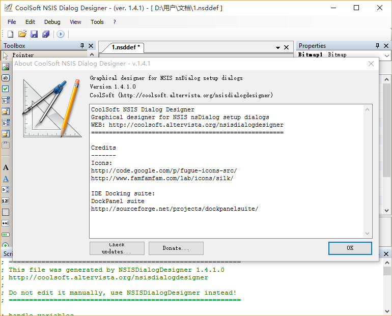 NSIS对话设计师仍然是一个工作正在进行中,因此在这个页面。