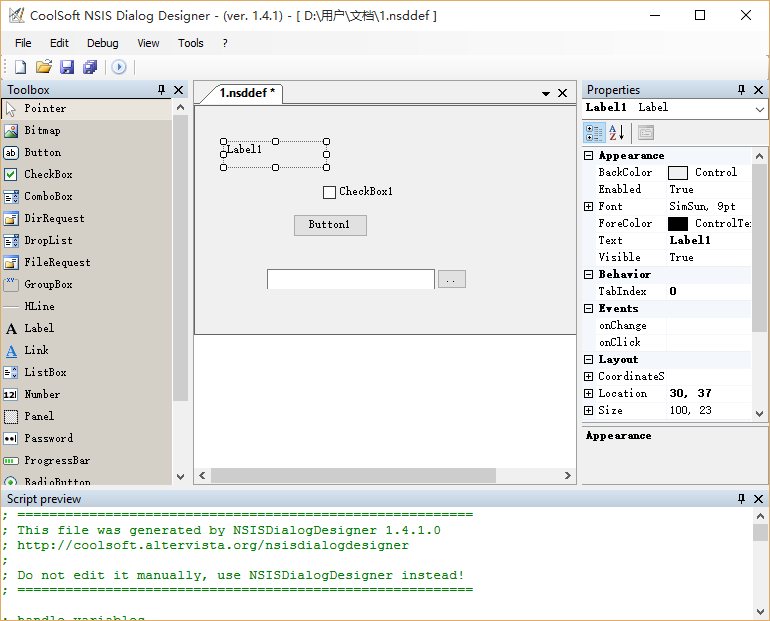 NSIS对话设计师是一个IDE。提供了一个图形化的工具来轻松设计您的自定义设置页面为伟大的NSIS安装系统。