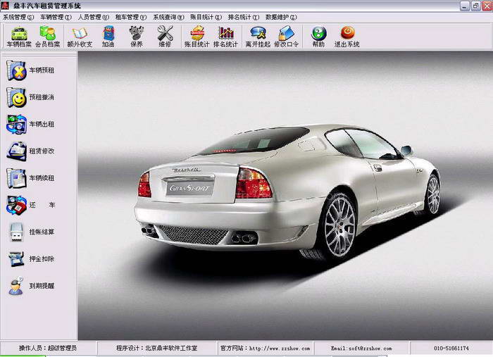 <鼎丰汽车租赁管理>是针对汽车租赁行业量身定做的一套行业管理软件,软件集成现在车辆租赁行业流行的租车流程,包含了车辆预租、预租撤消、车辆租赁,车辆续租、还车结算、租赁到期提示等功能,操作简易,界面清晰。同时软件提供了丰富的查询报表:预租查询、预租撤消查询、租车查询、车辆租赁排名等等,使您可以时时对数据进行多方位的统计查询。软件的车辆管理模块更加方便了您对车辆的管理,提供了加油、保养、维修、保险等多方位一体化的管理模式,让您轻松应对。对租车客户采用普通客户和会员客户的分类管理,使您更好的了解和把握客户群体。使用<鼎丰汽车租赁管理>将使您轻松成为汽车租赁行业的专家!