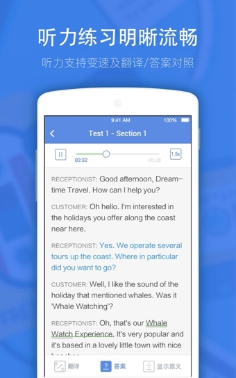 剑桥雅思5—10听力,精听精练,还有听力翻译和听力变速功能,给你最流畅的做题体验~