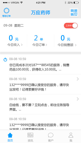 万应药师(万应送药药剂师版),为药剂师量身打造。让所有药剂师每月都可以增收至少4000元,轻松实现收入翻一番!【软件功能】