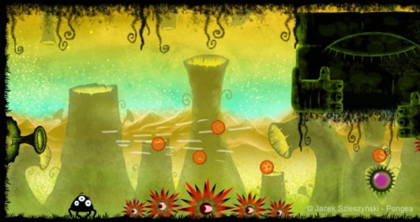 《庞戈Pongea1》是一款场景非常丰富的闯关类手机游戏,游戏中的的角色人物非常的另类特殊,是一个三只眼、全身非常奇怪的怪物,不过它的能力还是相当的不错的!唯一可以表扬的就是画面了,唯美的水彩画风,虽然点击很简单,但是要找到合适的点击位置特别难。