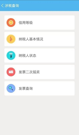 5、涉税查询,可对纳税人信用等级、纳税人基本情况、纳税人状态、发票二次摇奖、发票信息进行在线查询。