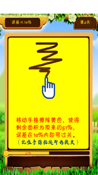 “爱比例”一款按照给定比例擦除像素的小游戏,玩家擦除像素后的剩余面积在误差范围内即可过关。玩家必须注意的地方是触屏的位置可能和擦除位置不一致,移动手指,系统会按照某种对称关系擦除像素,这种对称关系需要玩家自己去体会,另外绿色像素是必须要擦除的,红色像素不能触碰,比例点可选择擦除。手指抬起就是提交结果