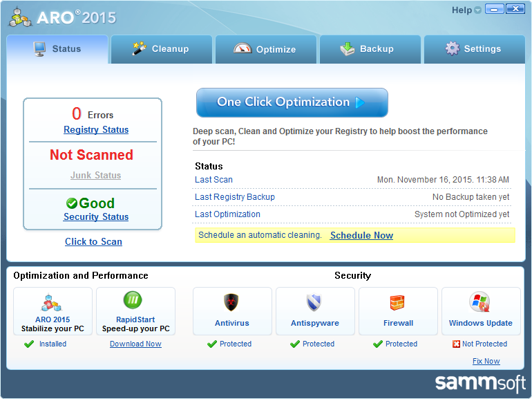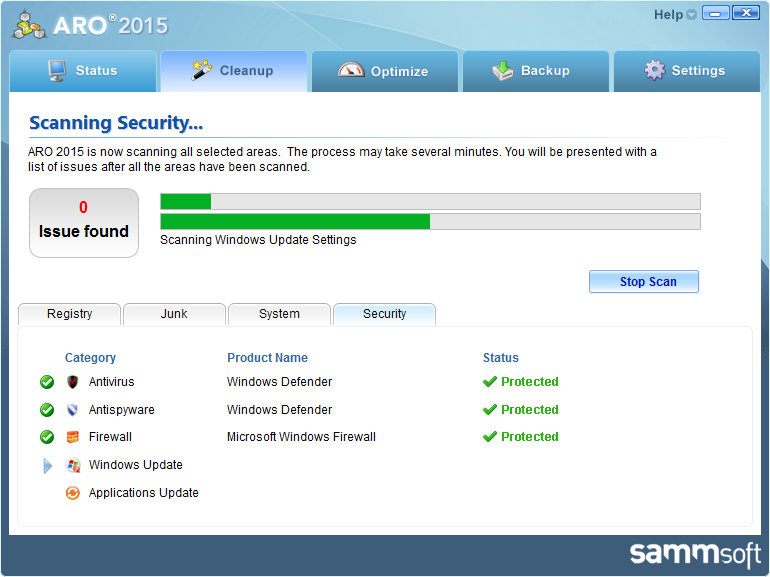 ARO扫描3个主要领域:注册表,垃圾邮件和安全。注册表扫描分析Windows注册表中的错误的13个地区和indentifies可能的注册表的调整。