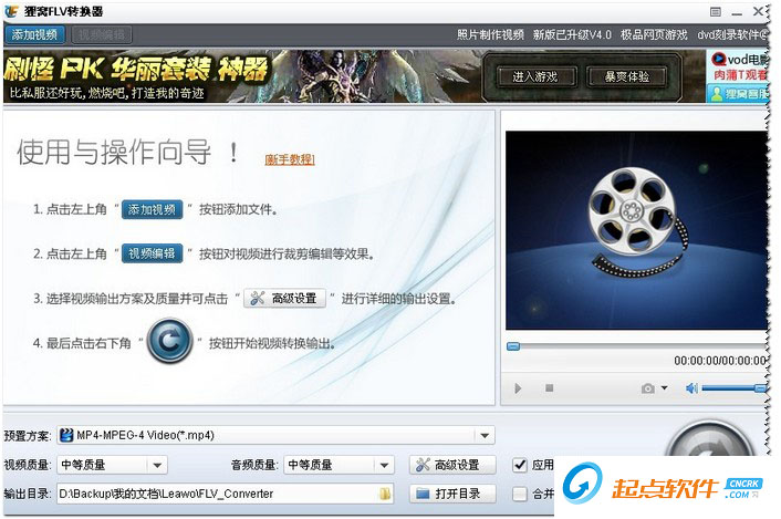 狸窝FLV视频转换器不单可以转换多种音视频格式功能,狸窝flv转换器同时也是一款简单易用而且功能强大的音视频编辑器!利用FLV视频转换器的视频编辑功能,DIY你自己拍摄或收集的视频或小电影,让它独一无二,特色十足。在视频转换设置中,您可以对输入的视频文件进行可视化编辑,例如:裁剪视频,截取部分视频转换,不同视频合并成一个文件输出,调节视频亮度,对比度等。【软件特点】