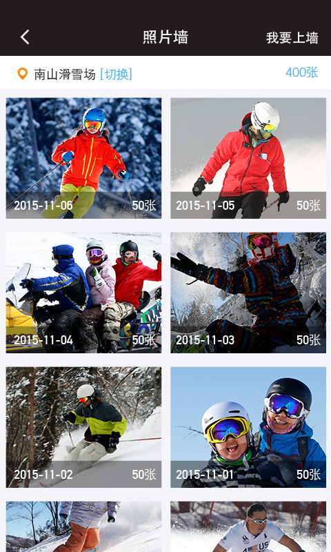 照片墙可以按照雪场查询影像资料。