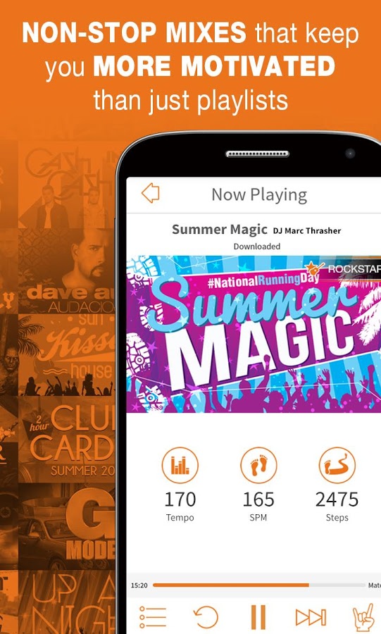 从你的健身音乐中获得更多的动力。助力奔跑RockMyRun与世界上最好的DJ合作来根据你的身体反应混合音乐并制作播放列表。你将会享受健身的每时每刻,因为音乐随时都在激励你!