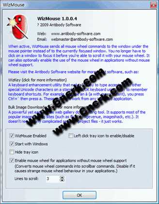 WizMouse V1.6.0.2 英文绿色免费版 你在聊天的同时想看网页的情况,浏览器就在聊天窗口下面,而网页内容太多需要往下翻,这时你就得切换窗口操作。或者等打完字,再切换到浏览器用滚轮操作,真痛苦。那么有了 WizMouse 就不不会痛苦了,边聊天变滚轮看网页不用切换窗口,很爽很适合大屏幕的用户。
