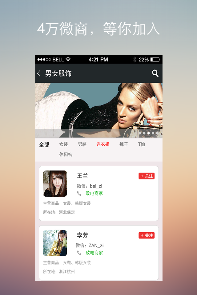 微商是一款非常实用的手机交易平台软件,这款软件专门为做微商的朋友准备打造,它能帮助用户搜索卖家与货源商,同时提供一个强大的交流社区,让用户从中吸取经验,快速成长,并为接下来的微商生涯,打下夯实的基础。