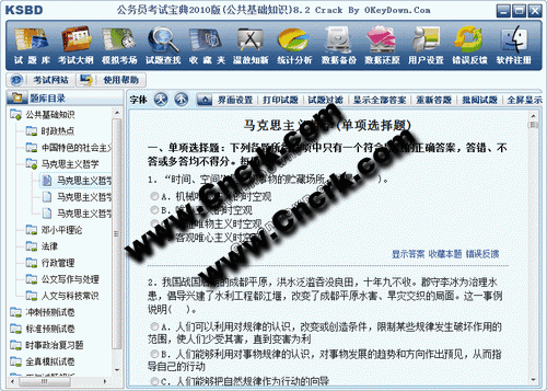 《公务员考试宝典(公共基础知识)》系公务员考试试题辅导软件,适用于公务员(公共基础知识)考试,软件试题库设计紧扣最新公务员(公共基础知识)考试大纲、考试教材,符合公务员(公共基础知识)考试考试题型与考试科目,复习辅导资料、考试资料丰富,免费试用、试题库巨大(注册版试题量达5千8百多题、90多万字),辅导软件收录公务员(公共基础知识)考试复习试题集、时事政治复习题、模拟试题、历年试题,试题辅导软件囊括了目前所有的最新公务员(公共基础知识)考试科目:时政热点、中国特色的社会主义理论体系、马克思主义哲学、邓小平理论、法律、行政管理、公文写作与处理、人文与科技常识、时事政治复习题、模拟试卷、历年试题,并提供专业级的公务员(公共基础知识)考试解题方法、答题技巧、考试要点精解。通过全面、针对性强的强化考试辅导训练、考前培训,提高您公务员(公共基础知识)考试的应试能力,辅导您考试成功。我们免费提供公务员(公共基础知识)考试报名时间、报名地点、报考条件、考试时间、成绩查询、合格分数线