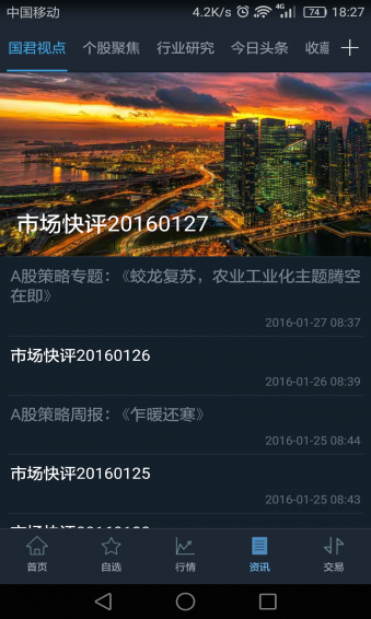 国泰君安“易阳指”是国泰君安证券免费提供的,集证券行情、交易、资讯和服务为一体的手机炒股软件。支持沪深港、全球股指、外汇、期货、商品等全市场行情并推出银证转帐、开放式基金开户及交易等特色功能。欢迎使用!【更新日志】