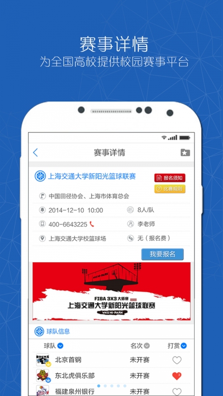 1、 为全国高校提供校园赛事平台2、 球员可组建球队或加入球队参赛
