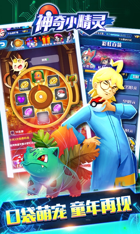 神奇小精灵:这是一块遍布神奇小精灵的大陆,皮卡丘、杰尼龟等一众神奇宝贝伴你同行!全球首创技能涟漪效应,百变随心的战棋、八方向攻击玩法,任性走位,五行相克,萌宠收集,带你畅游二次元游戏世界。收复小精灵,Pk训练家,挑战四大天王……放松呼吸,步步为营,跟随心的脚步,重温儿时经典,顺便调戏一下火箭军团,一步一步在卡洛斯,写下属于自己传奇故事吧!